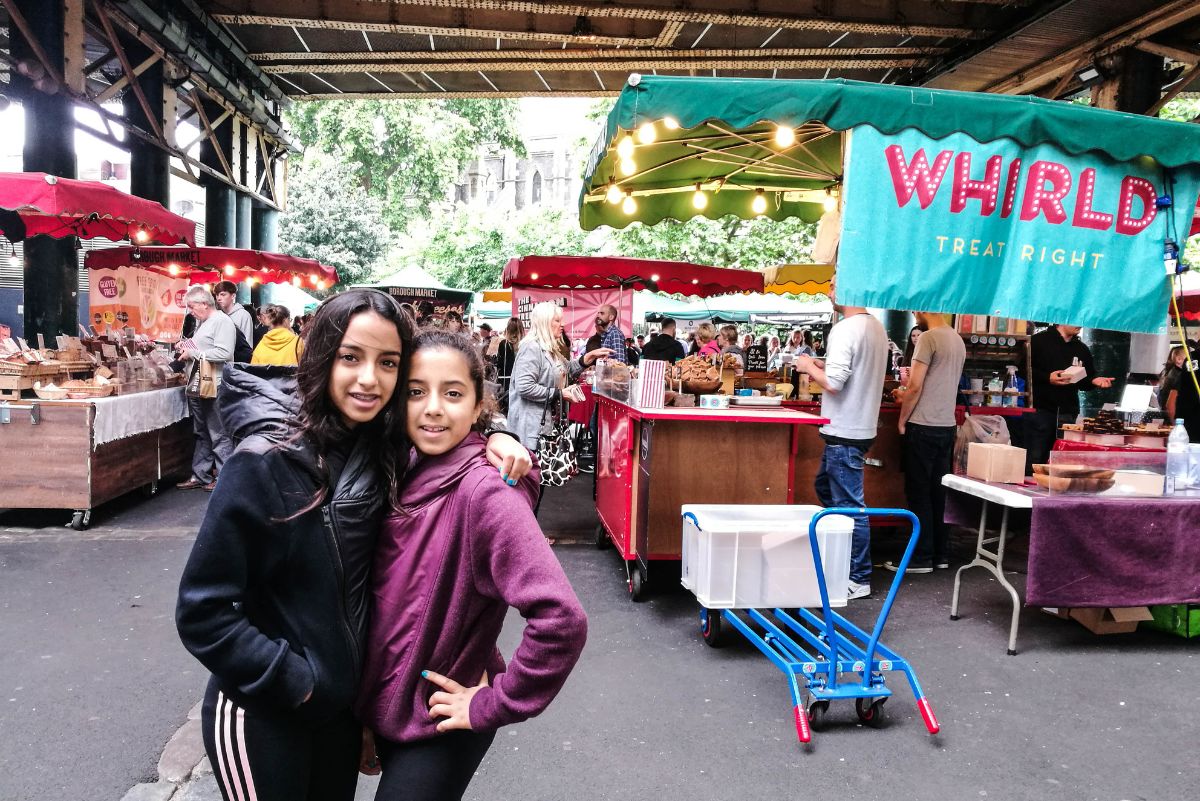 מהגשר המשכנו בצעידה לעבר שוק האוכל בורו מרקט Borough Market , השוק פתוח מ10:00 עד 17:00 כדאי לתכנן את שעות הביקור! השוק הזה הוא חגיגה לעיניים ולבטן והינו שוק האוכל הותיק והגדול ביותר בלונדון, כבר בכניסה לשוק מקדמים את פנינו דוכנים מרהיבים של אוכל טרי וצבעוני, המוגש בצורה מגרה, החל מעוגות ועוגיות, מיצים ופירות, מאפים וכל מיני מאכלים מיוחדים, האמת שזה היה טיימינג שבדיוק היינו רעבים והחלטנו שנעשה כאן עצירה לארוחת צהריים קלילה.